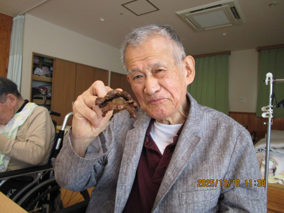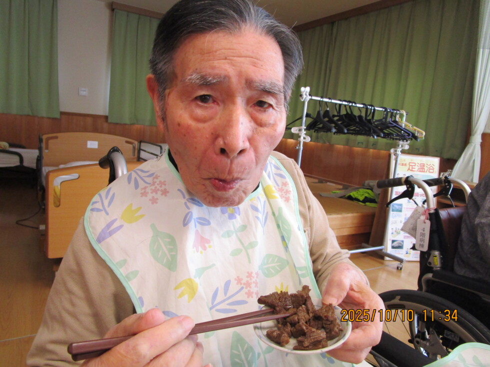 秋を感じる様になりました。コスモス畑の見学や、スタミナをつけて頂こうと、佐賀の黒毛和牛A4ランクの肉を用意して、お腹一杯食べて頂きました。感染症にも警戒しなければなりませんが、自己免疫が強くなったり、とにかく元気にお過ごし頂ければと願います。