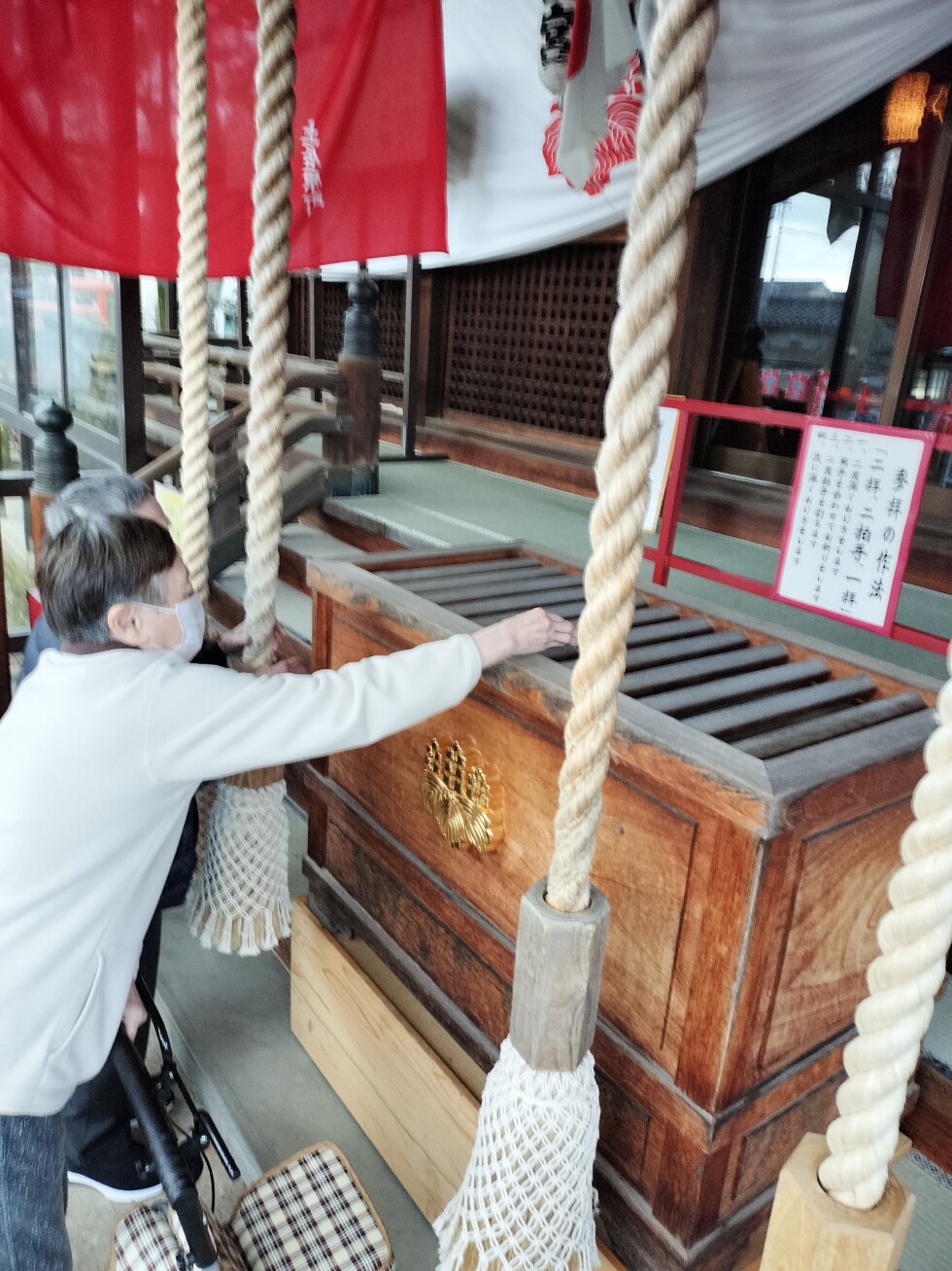 年が改まり、利用者代表の方と、初詣に出掛けました。皆さんの弥栄を衷心より祈念して頂きました。