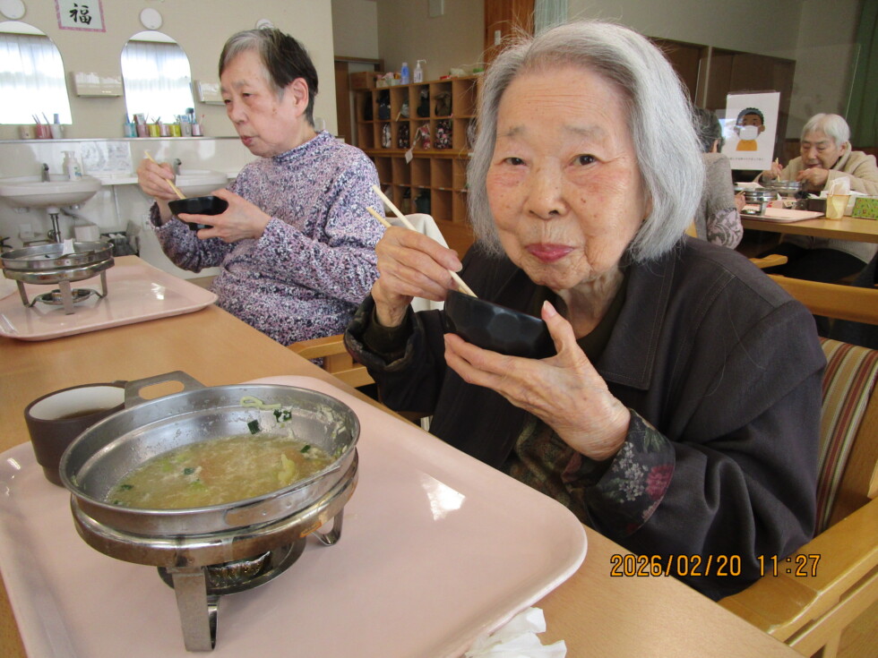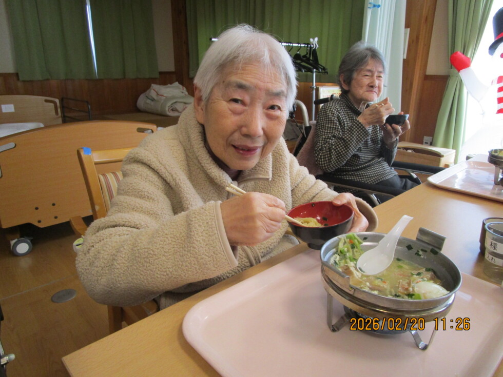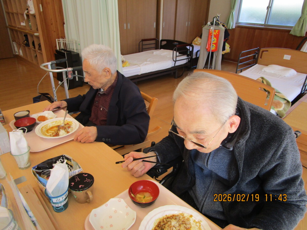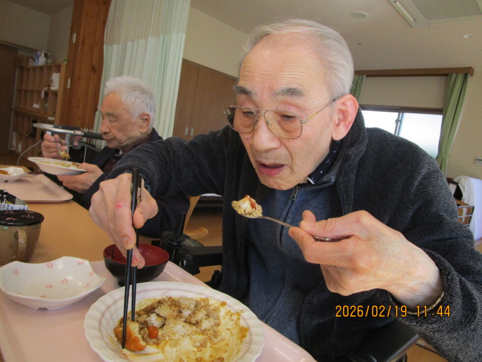 鍋で煮込んだラーメンに、手作りコロッケカレーを召し上がって頂きました。皆さんペロリとたいらげられました!