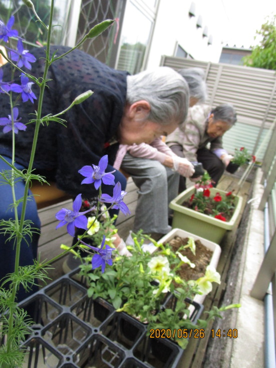 「フローラルこまつ」さんの花苗を植えました。 投稿日:2020-05-28 by き楽な里 今回も、フローラルこまつさんの花苗を戴き、大勢で植えさせて頂きました。一気に明るい雰囲気となりました。ありがとうございます!