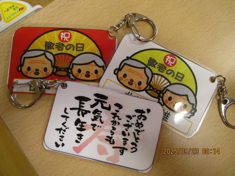 まことに細やかでございますが、高齢者さんおひとりお一人のご長寿を願い、ささやかなプレゼントと、敬老のお祝いの食事などを提供させて頂きました。