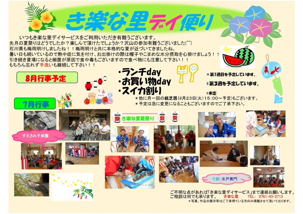 ●石川県小松市の住宅型有料老人ホーム「き楽な里」(デイサービス・訪問介護) 小松市串茶屋町にオープン。見学・体験随時受付中!!
