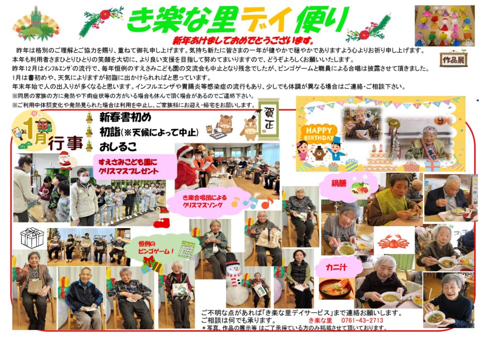 | 本年も利用者さまひとりひとりの笑顔を大切に、より良い支援を目指して努めてまいりますので、どうぞよろしくお願いいたします。 |